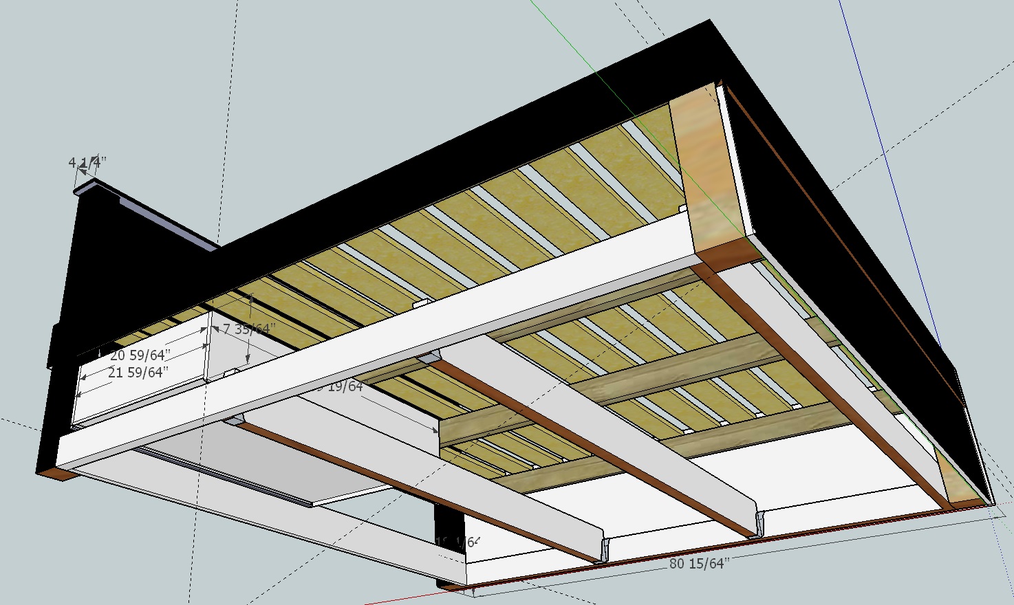 I used Google Sketch Up (Free 3 D modeling software) to layout this design. You can see my shipping container home design by clicking HERE. This bed is incorporated into the floor layout on the Shipping Container design page.