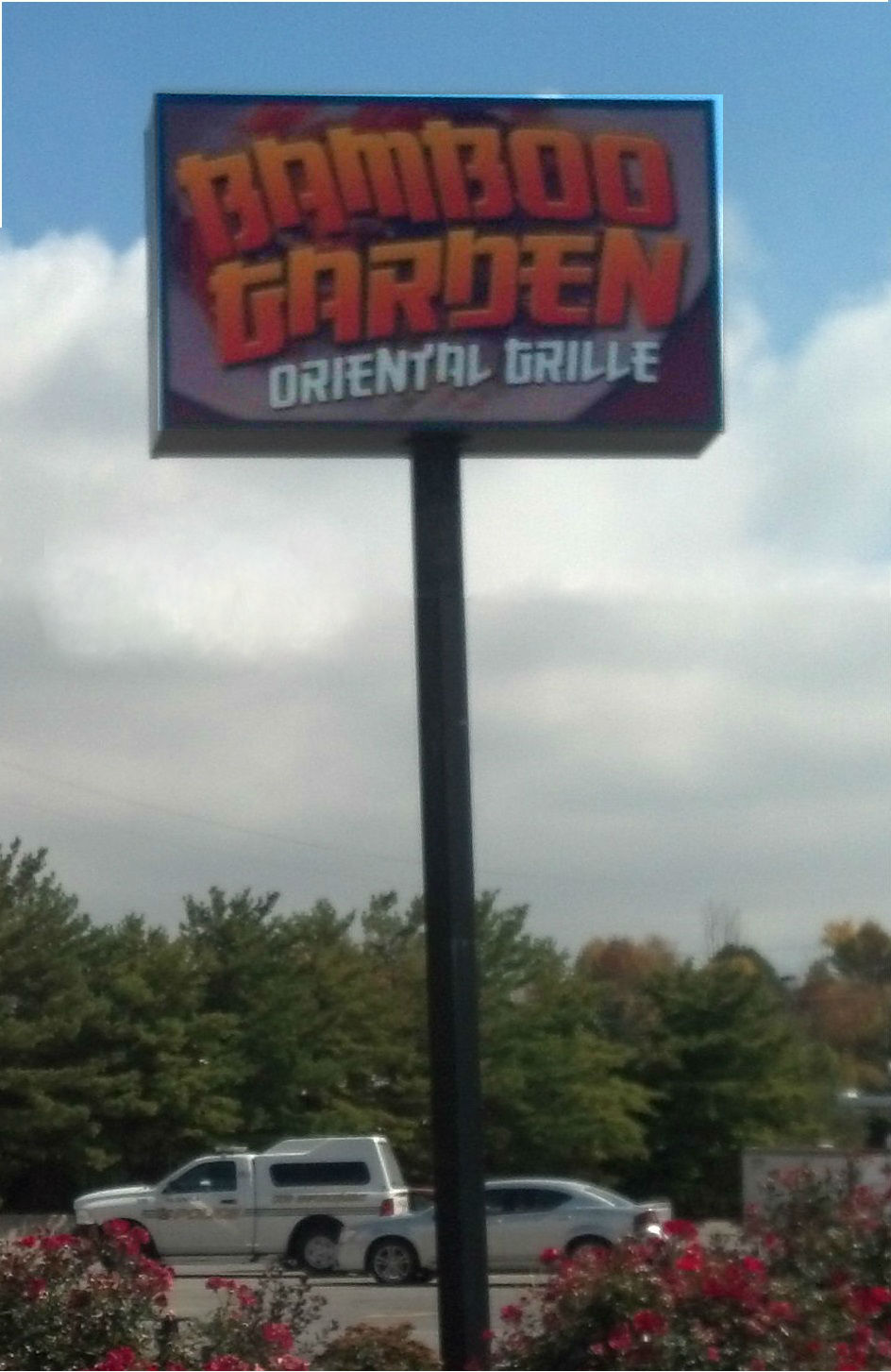 The business sign said: Oriental Grille. I didn’t see any “Orientals” (other than the Asian couple that left after they came in) or a grill. What does an “oriental ” look like anyway? Chopsticks may have been non-existent but Animal Enforcement was on site. There were now only 3 cars other than ours in the lot and one of them was the local dog catcher’s. The time was just after noon, the peak of the lunch rush.